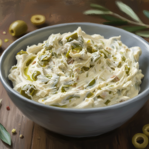 Ingredientes: azeitona verde, ricota, creme de leite, maionese.